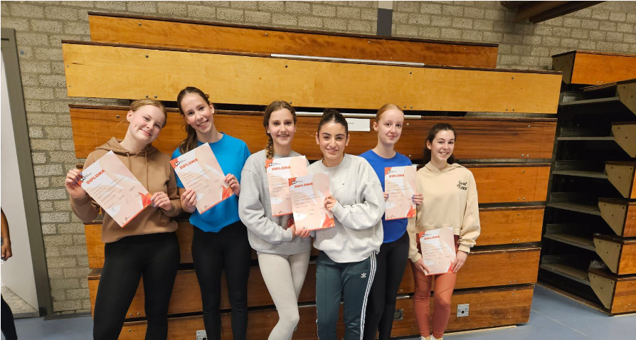 Uiteindelijk vond ik lesgeven leuker dan zelf turnen en ben ik als trainster bij Oranje Blauw blijven plakken. Op mijn veertiende begon ik met assisteren in de Weezenhof en zo ben ik er een beetje ingerold. Enkele cursussen later mocht ik mijn eigen groepen lesgeven. Sinds 2014 doe ik dat in Malden en sinds 2023 in Lent. Tussendoor heb ik nog een paar jaar de D-selectie en instapselectie lesgegeven, dat vond ik ook heel leuk.